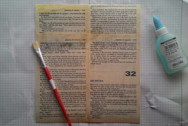 Supplies: File Folder, Book Paper Page, Maries White Gesso, HBW Green Poster Paint, Stencil, Stamp by Stampology
